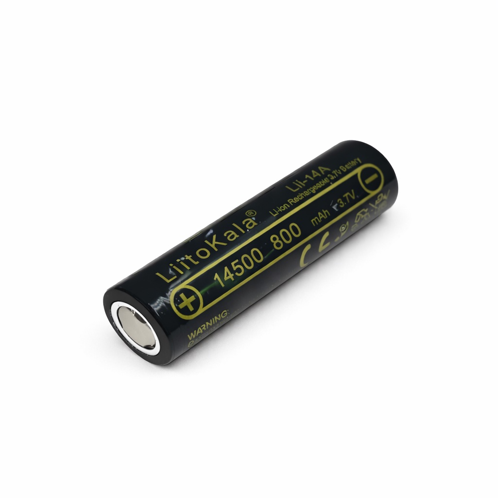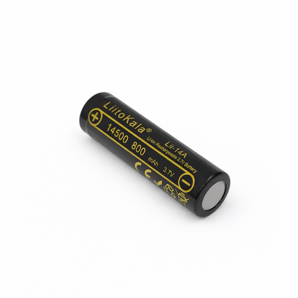 Акумулятор 14500 Li-Ion LiitoKala Lii-14A 3.7 V 800 mAh 1,6 A (технічний) — це перезаряджуваний літій-іонний елемент живлення стандарту 14500 (14×50 мм), який відповідає розміру AA.
