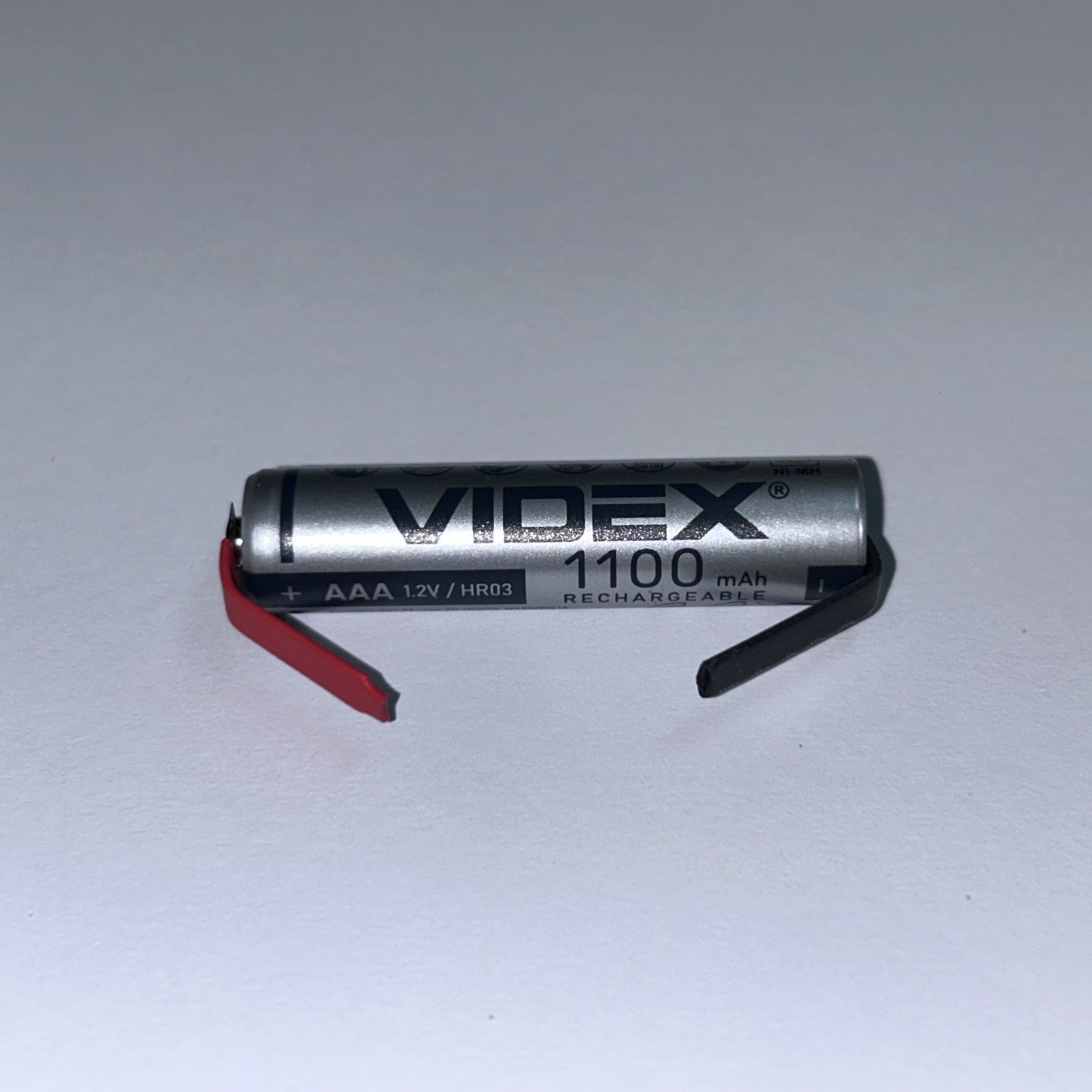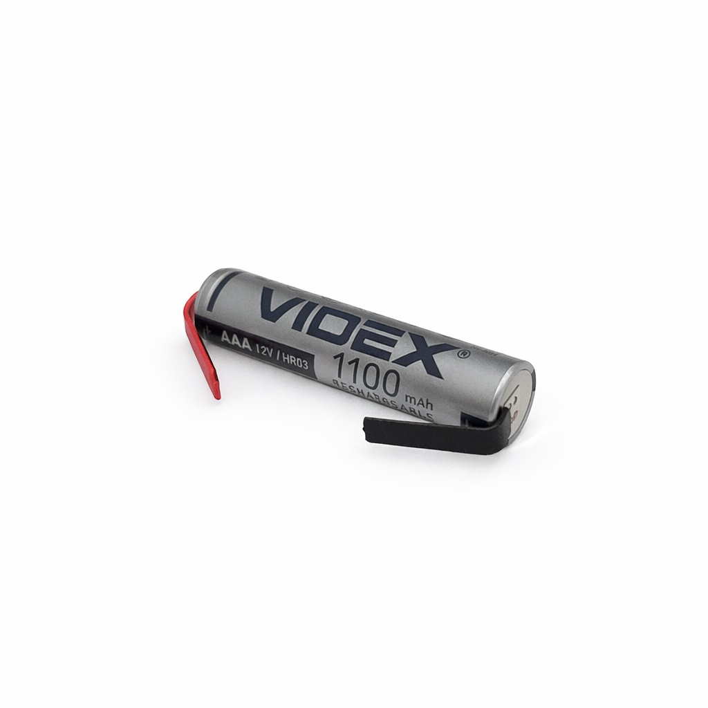 Акумулятор AAA (HR03) Ni-MH Videx 1.2 V 1100 mAhз пелюстками під паяння — це надійний нікель-металгідридний елемент живлення напругою 1.2 В та максимальною ємністю, розрахований на багаторазове перезаряджання. Оснащений пелюстками для паяння, що дозволяє безпечно та зручно використовувати його в акумуляторних збірках, ремонтних роботах та стаціонарних пристроях.