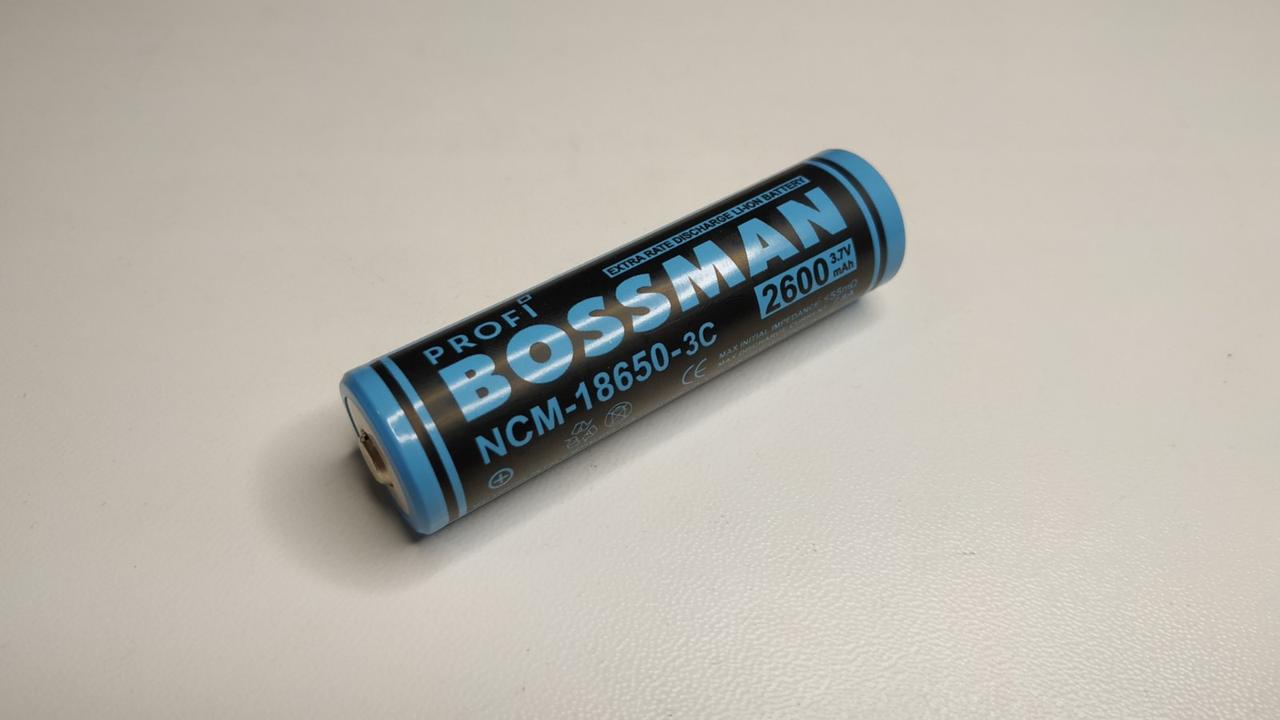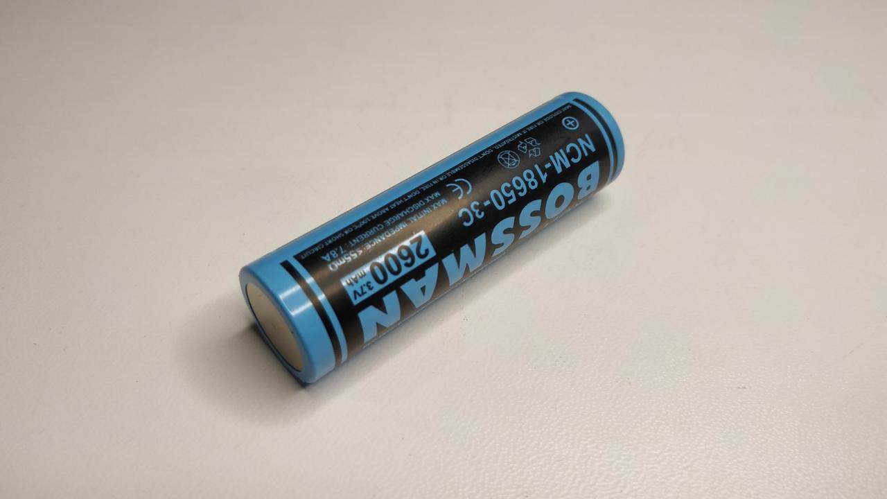 Акумулятор 18650 Li-Ion BOSSMAN 3.7 V 2600 mAh — це надійний елемент живлення для ліхтарів, акумуляторних інструментів, портативної електроніки та батарейних збірок. Завдяки ємності 2600 mAh забезпечує тривалий час роботи пристроїв без частого підзаряджання.