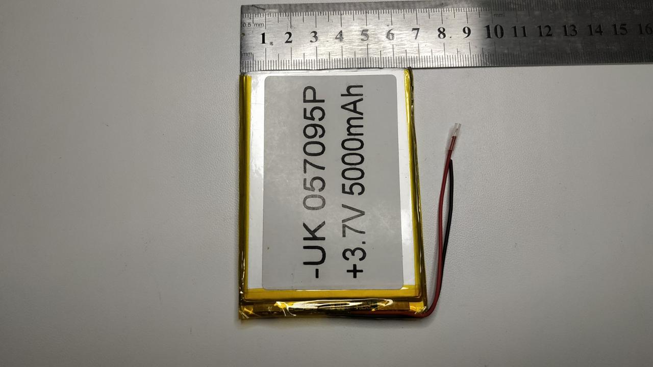 Літій-полімерний акумулятор формату 057095 ємністю 5000 mAh та напругою 3.7V оснащений вбудованим контролером заряду для безпечної роботи. Підходить для використання в портативній електроніці, DIY-проєктах та пристроях автономного живлення.