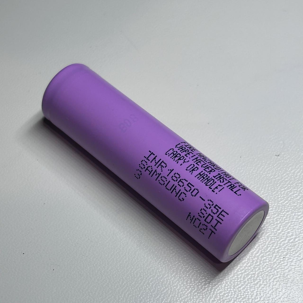 Акумулятор 18650 Li-Ion Samsung INR18650-35E 3.6V 3400 mAh – це оригінальний технічний (з плоскою плюсовою клемою) акумулятор формату 18650 без захисту бренда Samsung.