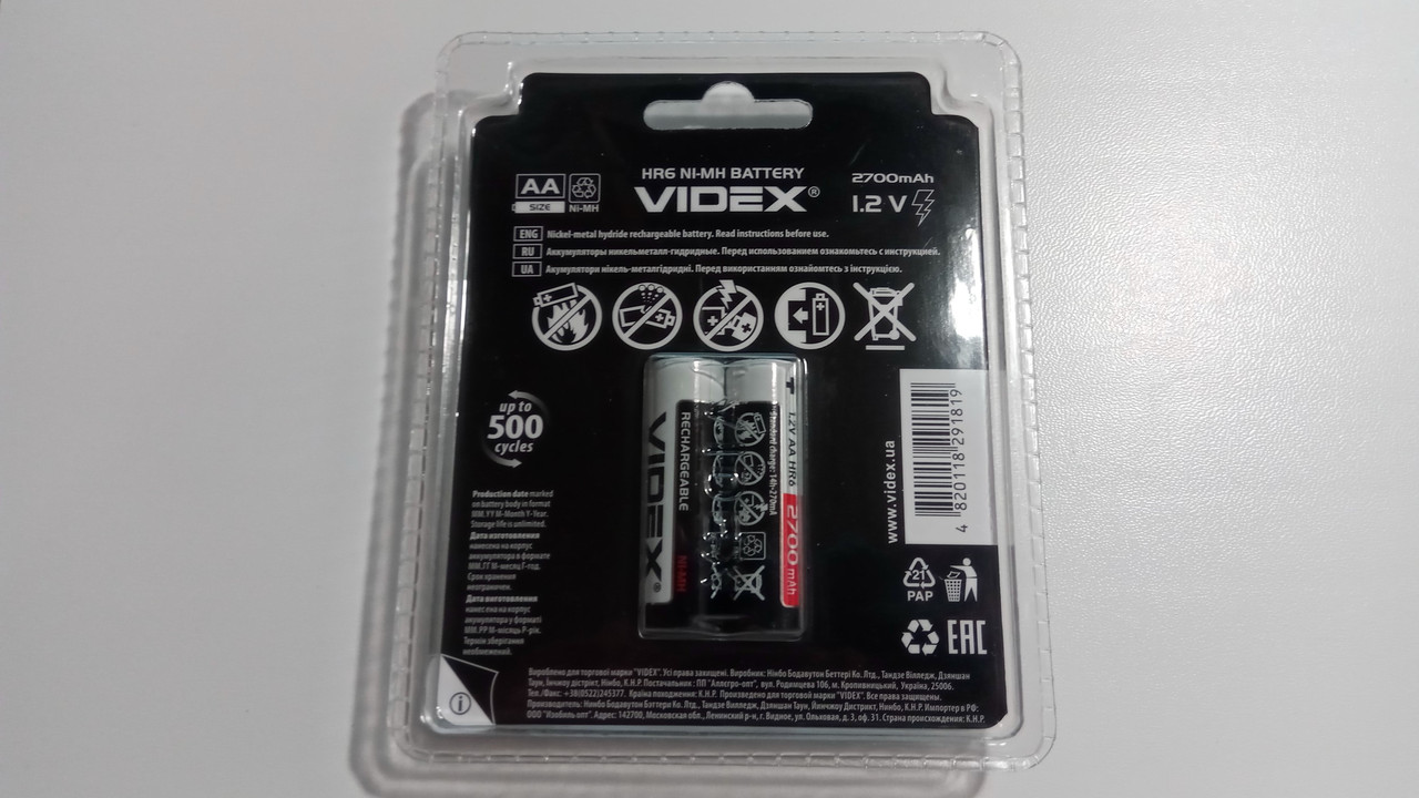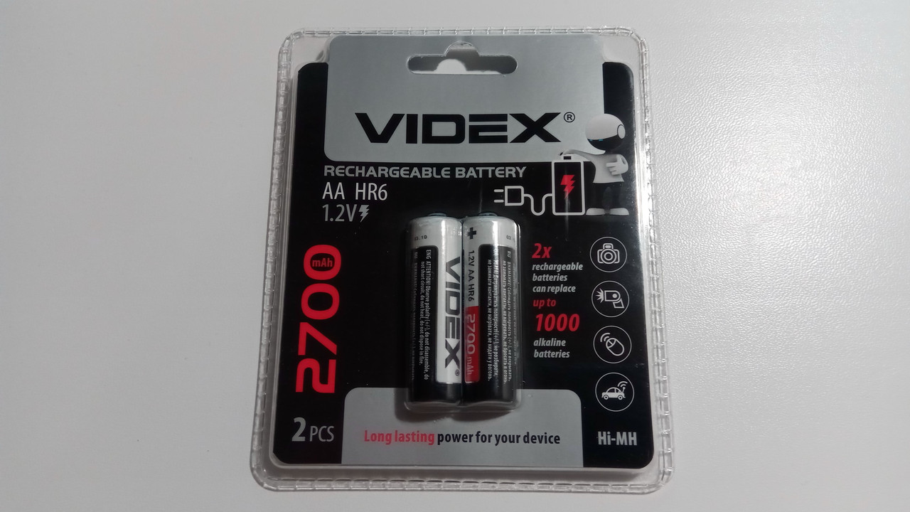 Акумулятор Videx 2700 mAh АА підходить для швидкого заряду і має тривалий термін служби.