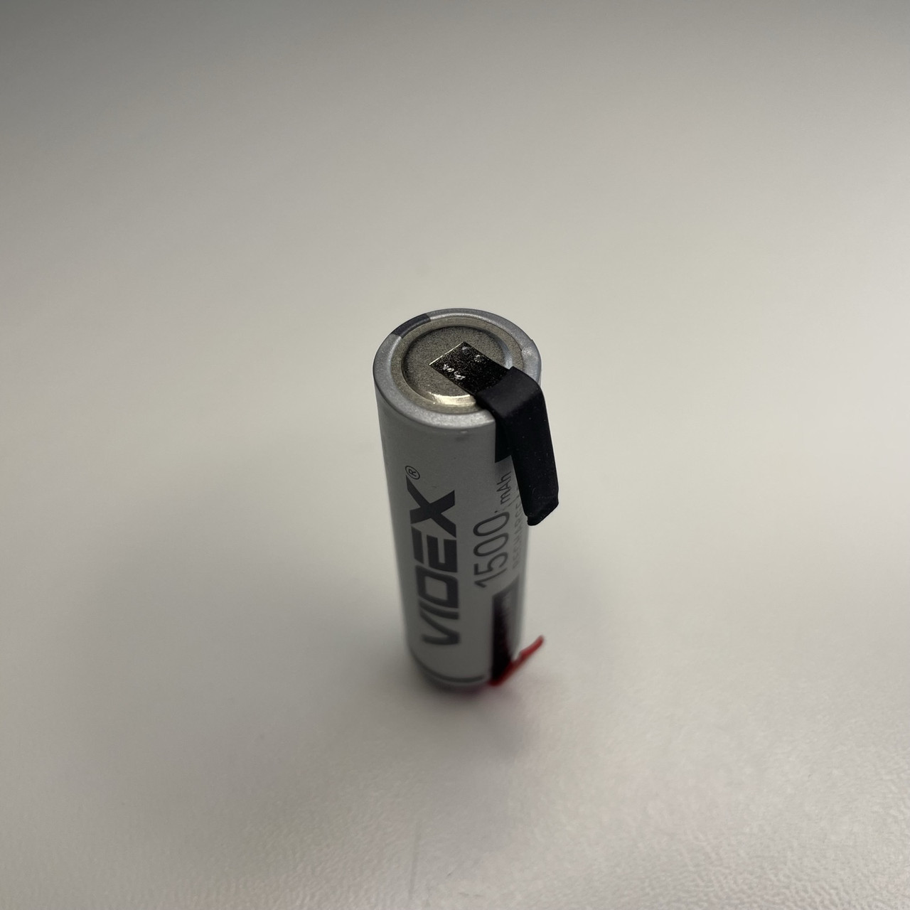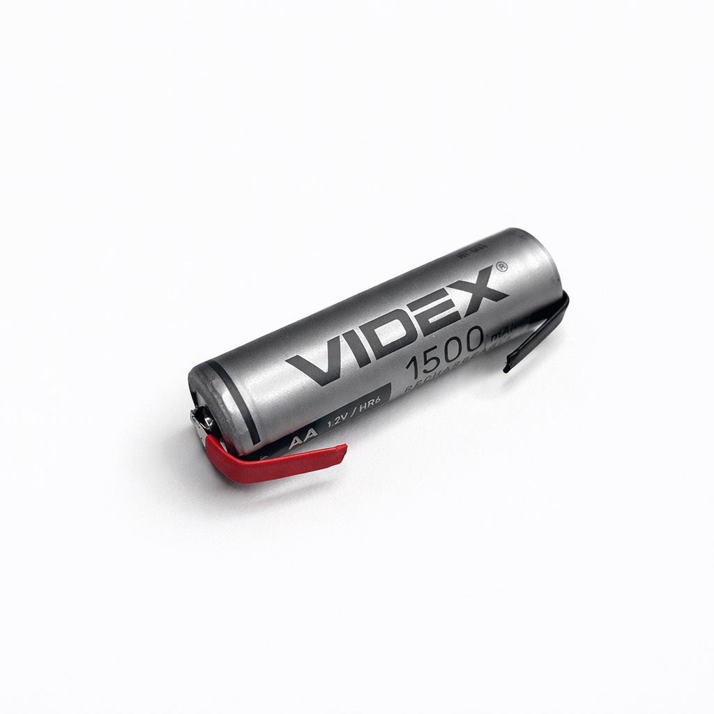 Акумулятор AA/HR6 Ni-MH Videx 1.2 V 1500 mAh з пелюстками під паяння — це надійний нікель-металгідридний елемент живлення напругою 1.2 В та реальною ємністю 1500 mAh, розрахований на багаторазове перезаряджання. Оснащений пелюстками для паяння, що дозволяє безпечно та зручно використовувати його в акумуляторних збірках, ремонтних роботах та стаціонарних пристроях.