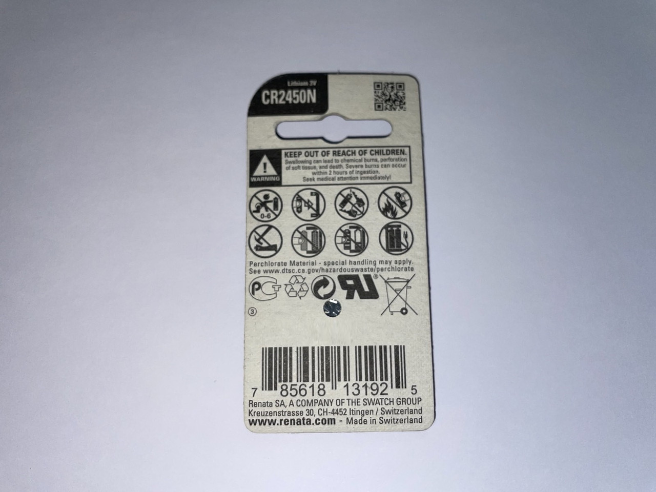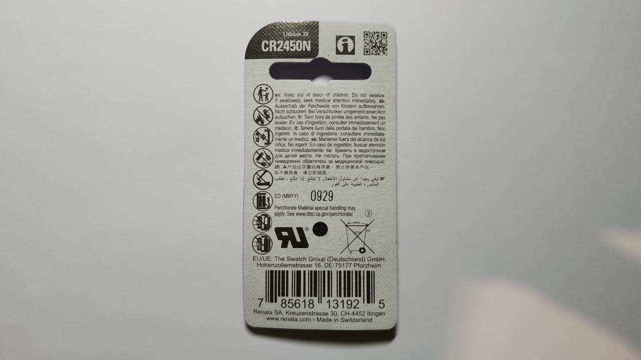Батарейка літієва RENATA CR2450N, 3V, 540 mAh (Li/MnO2)Батарейка літієва RENATA CR2450N, 3V, 540 mAh (Li/MnO2)