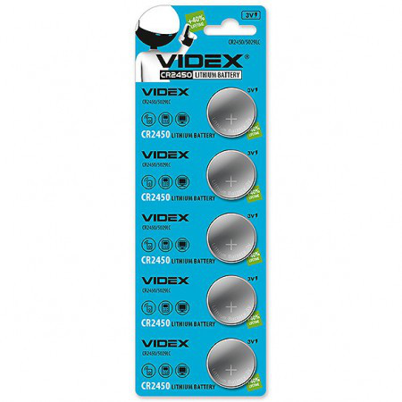 Батарейка літієва Videx CR2450 3V 5 pcs blister card 100 шт./пач.Наявність: 1 в наявності
