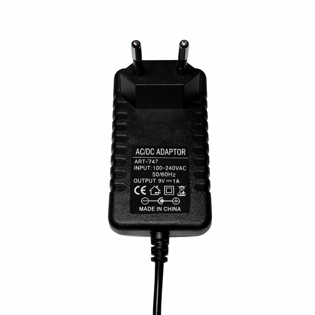 Розпоповсюджений Блок живлення AC/DC 9V 1A з не менш поширеним конектором для під’єднання 5.5/2.1-2.5 мм.