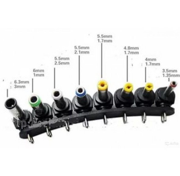 - 8 знімних штекерів: 3,5х1,5 мм, 4,0х1,6 мм, 4,8х1,6 мм, 5,5х1,7 мм, 5,5х2,5 мм, 5,5х2,8 мм 6,3х3,4 мм, 6,0х4,5 мм;