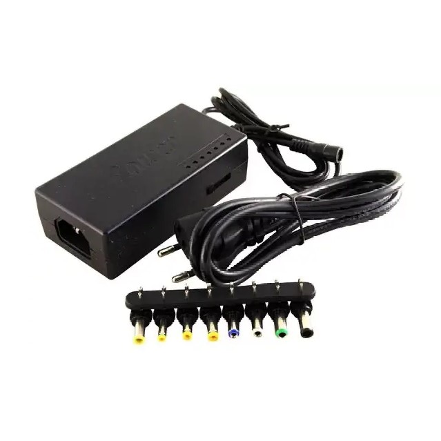 У комплект входить набір із 8 змінних штекерів, що забезпечує широку сумісність з ноутбуками, портативною технікою та іншими пристроями. Блок живлення працює від мережі 110–240V, має вбудований захист і підходить для використання вдома, в офісі або в дорозі.