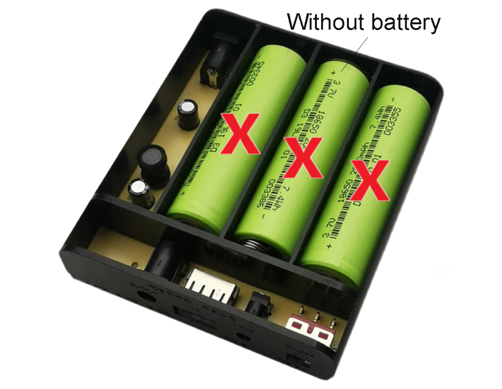 ДБЖ працює від 3 технічних акумуляторів 18650. Пам'ятайте, що акумулятори мають бути однакові за характеристиками та з струмовіддачею не менш ніж 6 А без падіння напруги. Будьте готові, що б/у акумулятори у зношеному стані не віддадуть усю ємність. Рекомендується використовувати нові акумулятори.