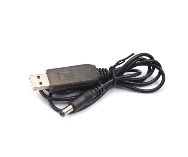 На кінцях кабелю штекера USB і 5.5×2.1/2.5 мм відповідно.