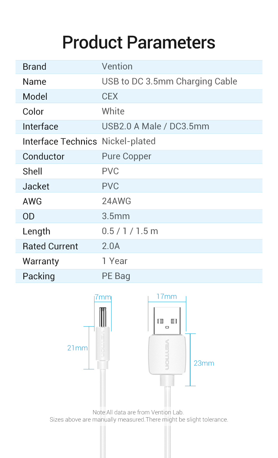 Питання та відповіді стосовно товару Кабель живлення Vention DC 5 V USB на 5 V 3.5×1.5mm