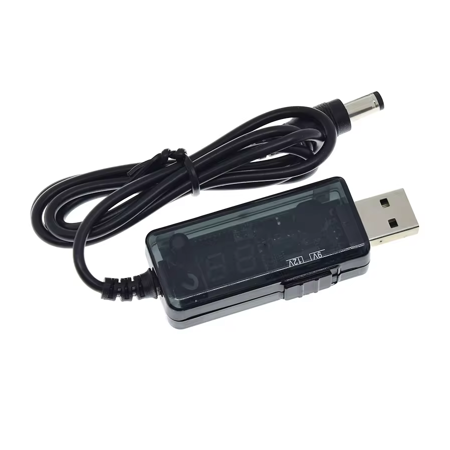 Кабель живлення USB 5V на 9V / 12V виготовлений у заводському виконанні та має вбудований цифровий дисплей (вольтметр), який відображає фактичну вихідну напругу. Підтримується вибір вихідної напруги 9V або 12V, що дозволяє використовувати кабель з різними типами мережевого обладнання.