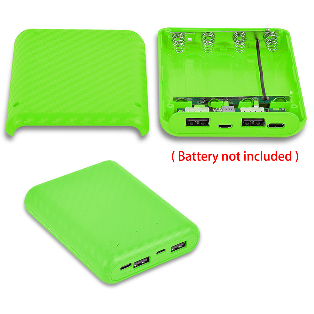 Корпус павербанка DIY на 4×18650 10W, 5V / 2.1A, USB, Micro-USB та Type-C, (без акумуляторів), салатовий