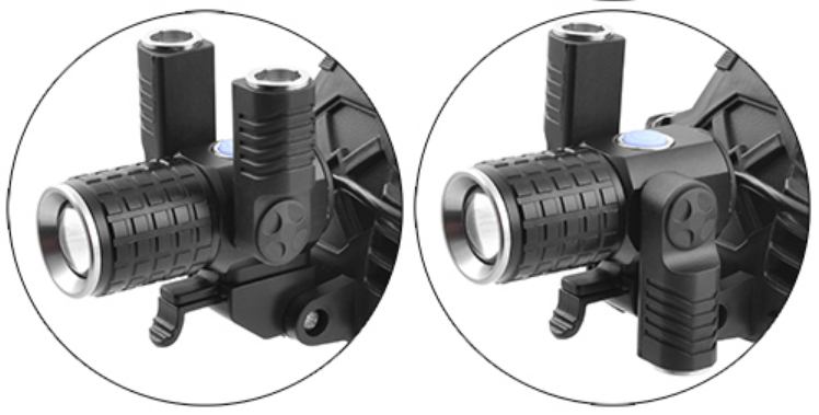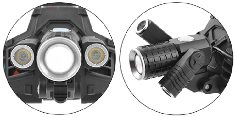 Додаткові характеристики: Регульований кут нахилу голови ліхтаря до 100 градусів. Бічні вогні можуть повертатися на 180 градусів. Може працювати від 1 акумулятора 18650, може використовуватися як велосипедна фара.