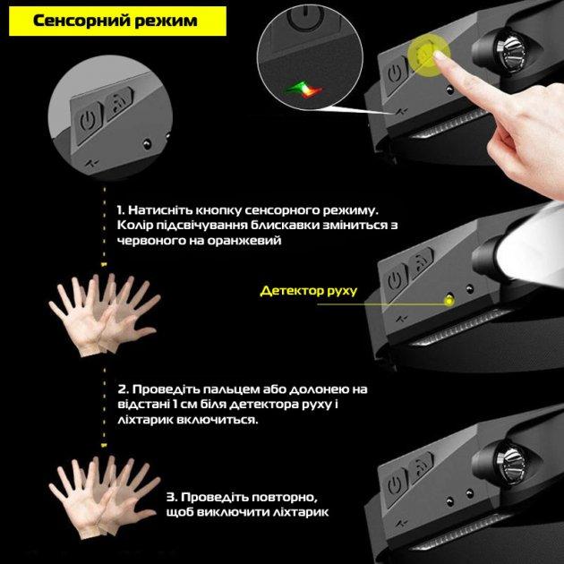 Ліхтар налобний із датчиком руху BL-G26/8093 з подвійним джерелом світла та сенсорним датчиком увімкнення — необхідний аксесуар для риболовлі, для полювання, для бігу, для кемпінгу, для лижника, для роботи та багато чого іншого. Налобний ліхтар здатний давати широкий потужний промінь, який чудово підходить для кемпінгу та освітлення великого простору та яскравий точковий промінь для освітлення вузької доріжки.
