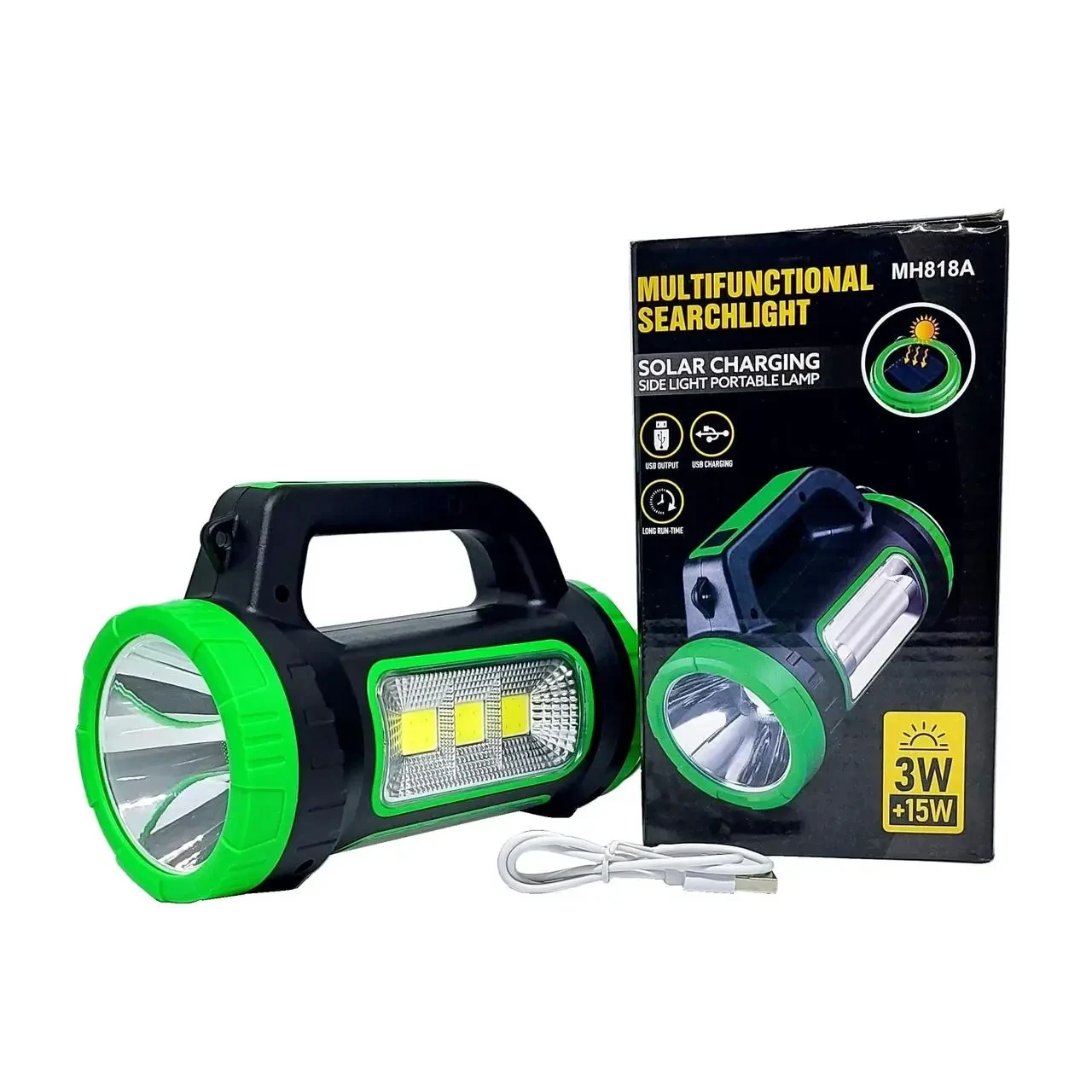 Має сонячну панель і вихід USB для використання ліхтаря як повербанка.