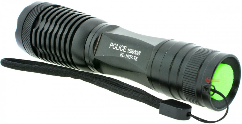 Тактичний світлодіодний ліхтар Bailong Police BL-1837-T6 з потужністю до 1000 люмен і дальністю освітлення до 700 метрів. Оснащений світлодіодом Cree XM-L T6, функцією фокусування (Zoom), стробоскопом та працює від акумулятора 18650.