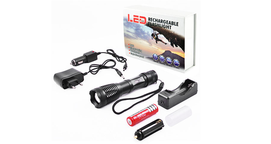 • Комплектація: ліхтар, акумулятор 18650, зарядний пристрій 220В, зарядний пристрій 12В, коробка