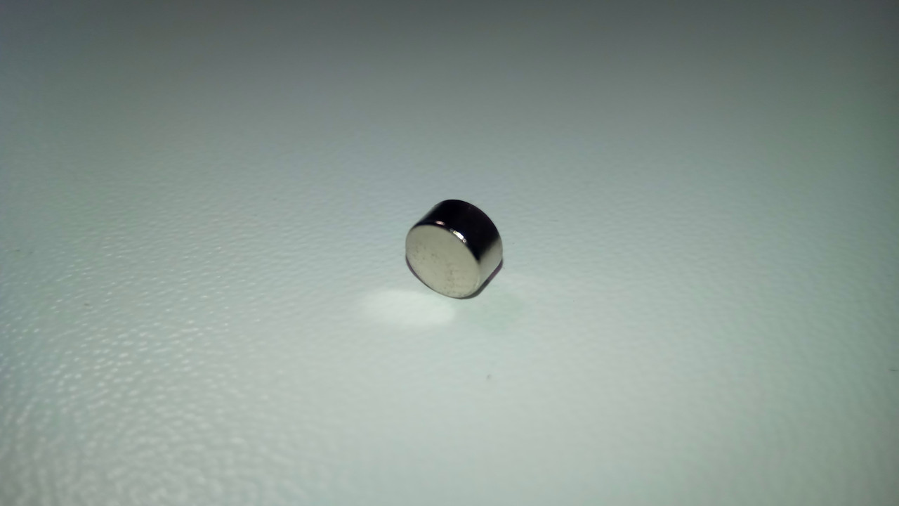 Сильний рідкоземельний магніт діаметром 5 мм і завтовшки 3 мм.