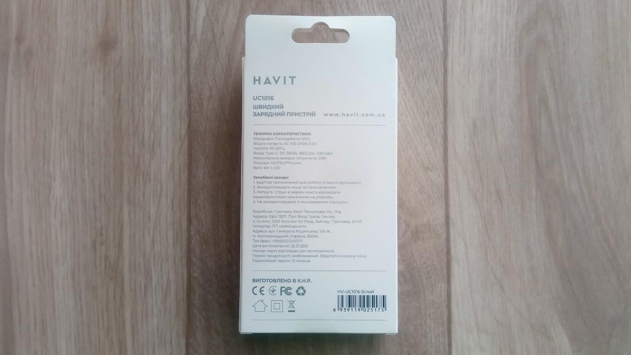 Зарядний пристрій оснащений універсальним розʼємом USB Type-C та автоматично підбирає оптимальні параметри напруги і струму для підключеного пристрою. Корпус виготовлений з міцного полікарбонату, стійкого до перегріву та механічних пошкоджень, що робить HAVIT UC1016 надійним рішенням для щоденного використання вдома, в офісі або в подорожах.