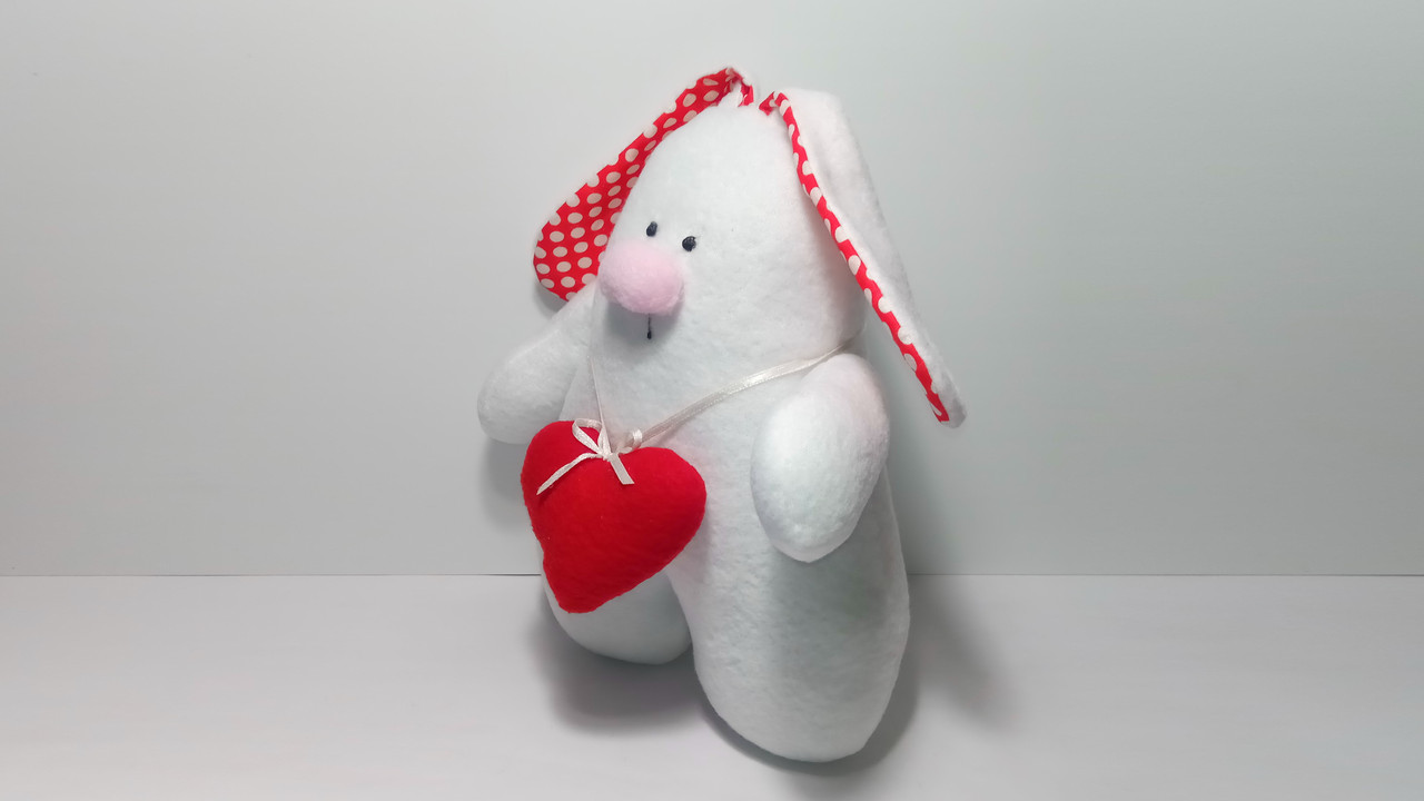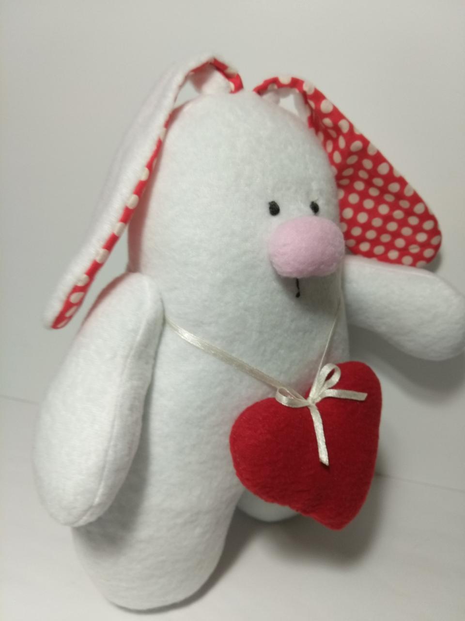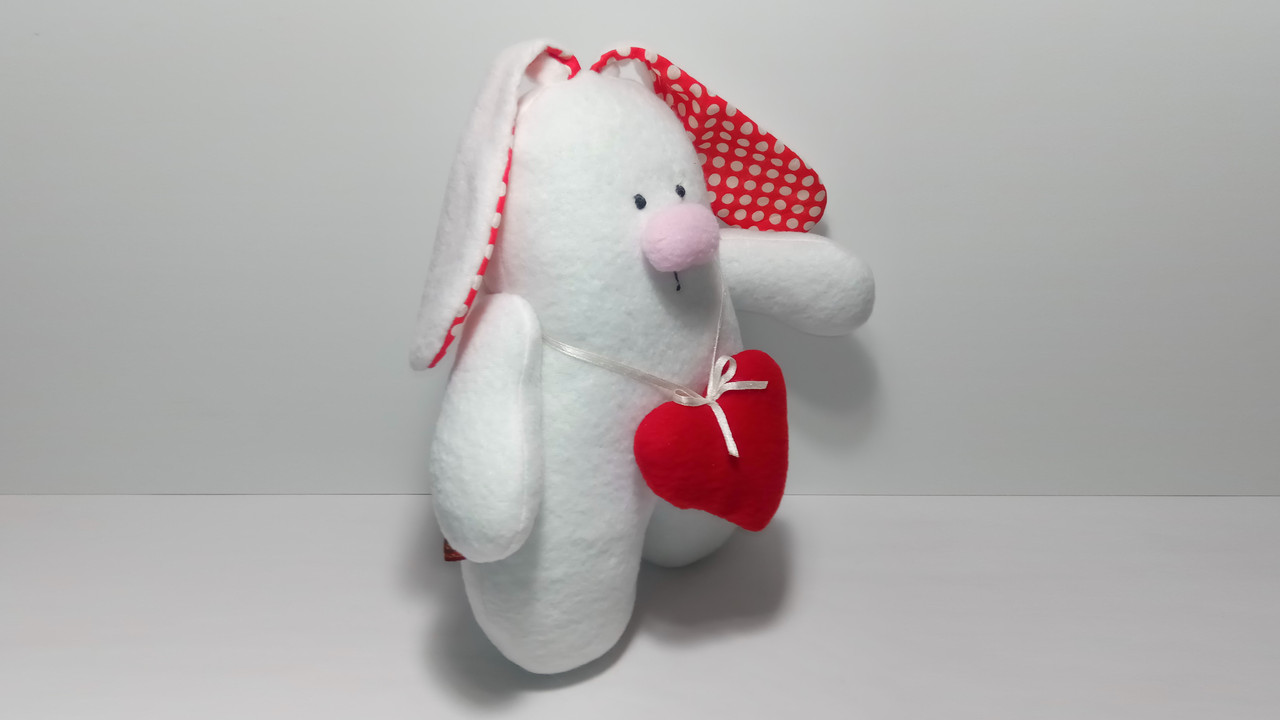 М’яка іграшка ручної роботи “Зайченя з серцем”, білий