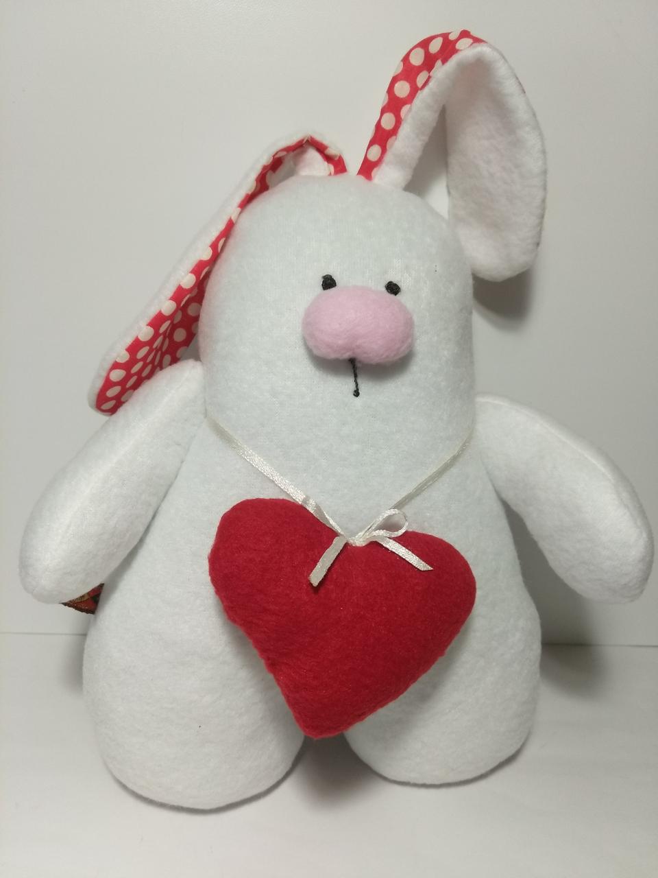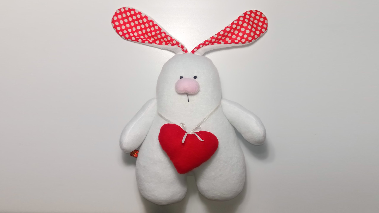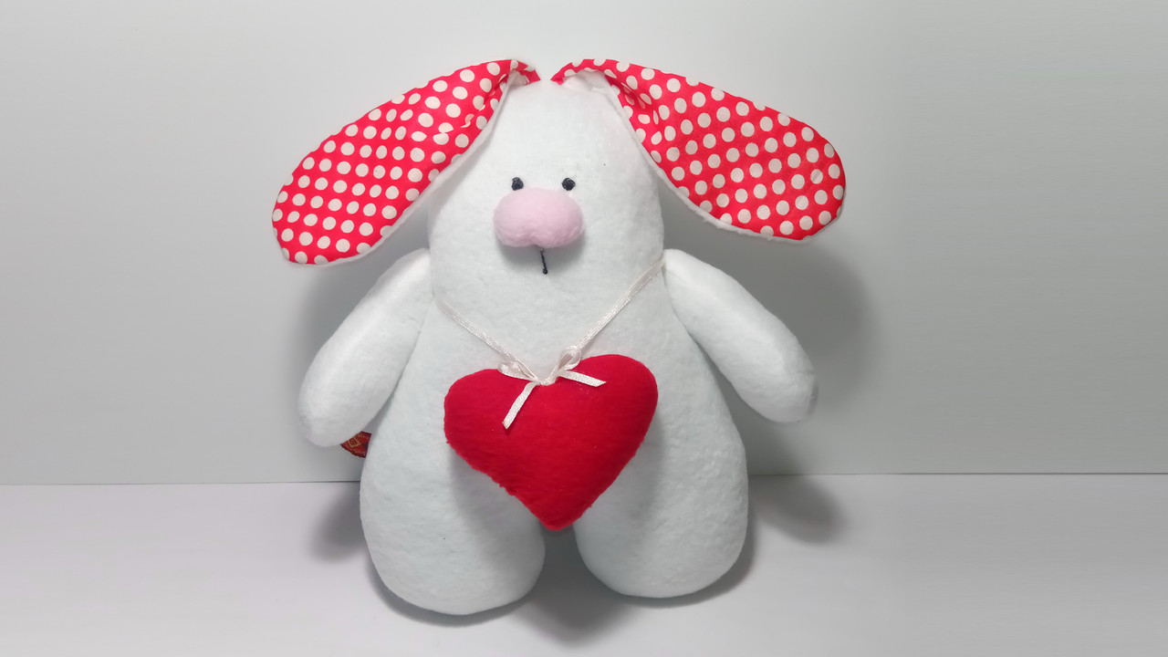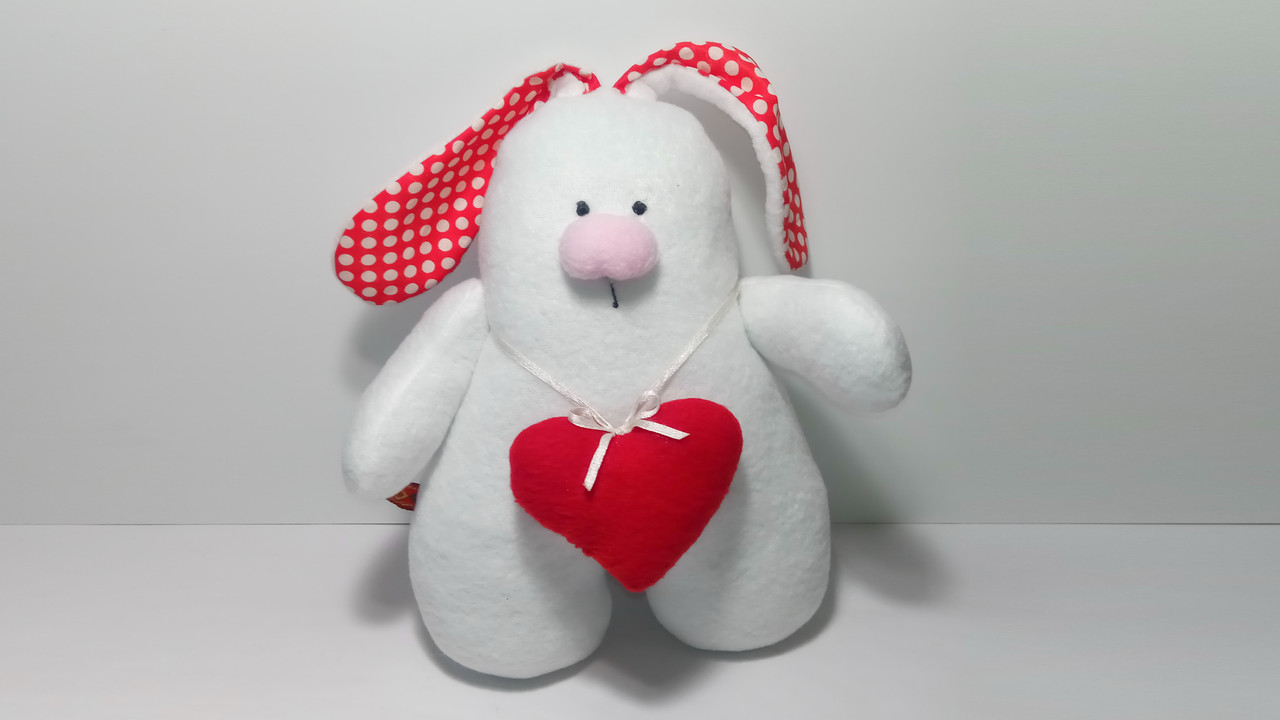 М’яка іграшка ручної роботи “Зайченя з серцем”, білий