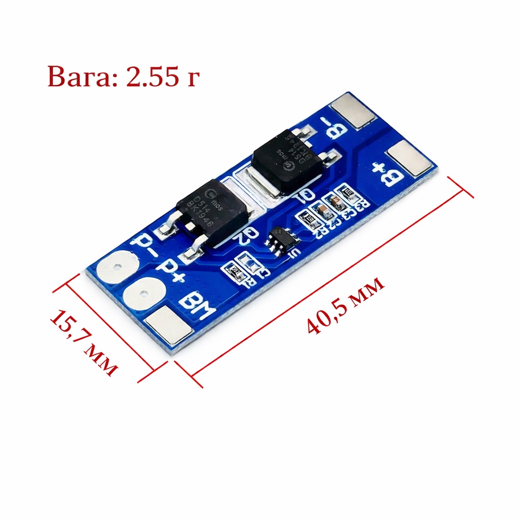 Плата захисту BMS 2S призначена для використання з літій-іонними акумуляторними збірками, що складаються з двох елементів, з’єднаних послідовно (2S).